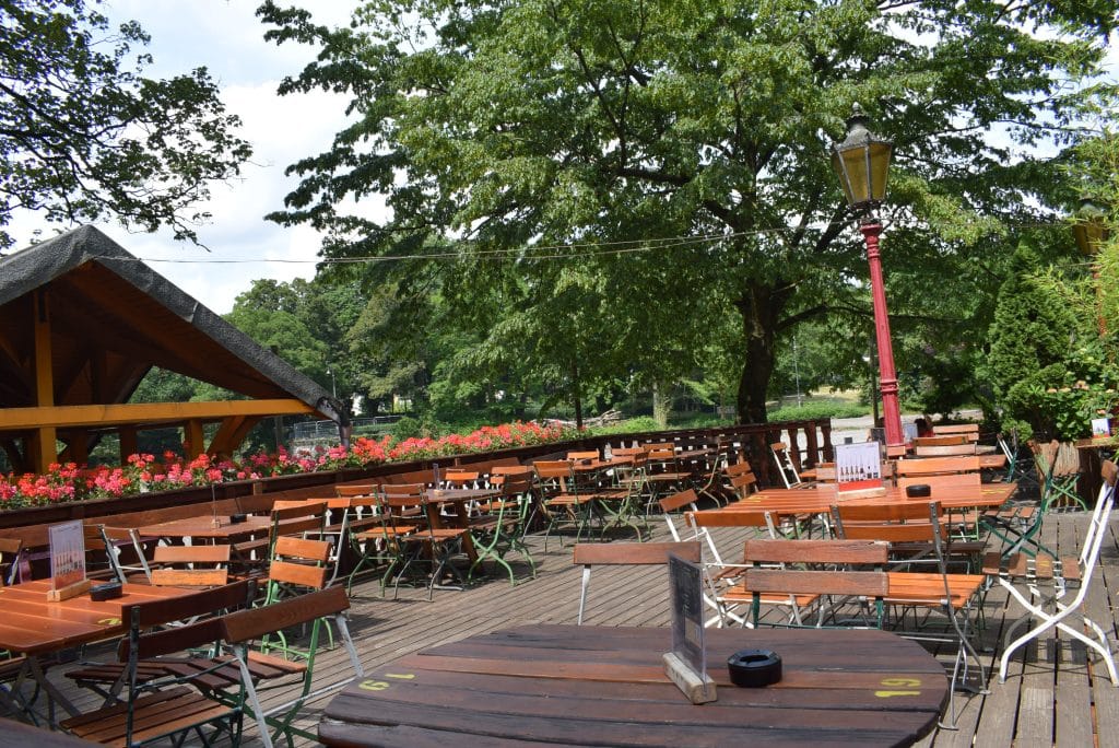 Nahe des Beethovenparks hat sich die Gaststätte „Em Birkebäumche“ ein Stammpublikum erobert. Kein Wunder, denn ein Aufenthalt im Biergarten des Restaurants ist fast schon wie ein kleiner Urlaub. Rund 200 Personen können es sich auf der Terrasse entweder auf einem überdachten Sitzplatz oder in der Sonne gemütlich machen. Ausgeschenkt wird hier neben vielen anderen Getränken übrigens „Schreckenskammer Kölsch“, was auch schon eher ungewöhnlich ist. Die Speisekarte bietet derweil kleine Snacks (u.a. hausgemachte Aioli, Halve Hahn oder Bockwurst), doch werden auch umfangreichere Tellerportionen wie etwa Kalbsschnitzel (mit Pommes und Salat) oder Rheinischer Sauerbraten an den Tisch gebracht. Wer also im Westen unterwegs ist und dort etwa dem Decksteiner Weiher einen Besuch abgestattet hat, sollte es nicht versäumen, unbedingt mal unterm Birkenbäumchen einzukehren.