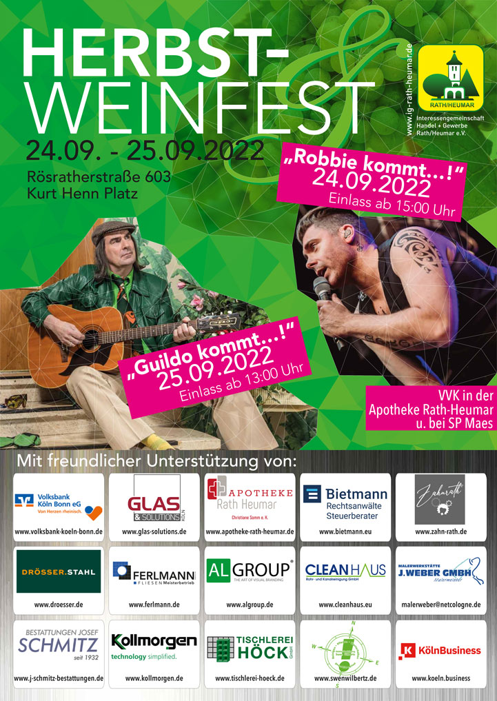 👉🏼 Weinfest Karten gibt es im Vorverkauf bei SP:Maes und der Apotheke Rath-Heumar (Rösrather Straße/Ecke Fockerweg)