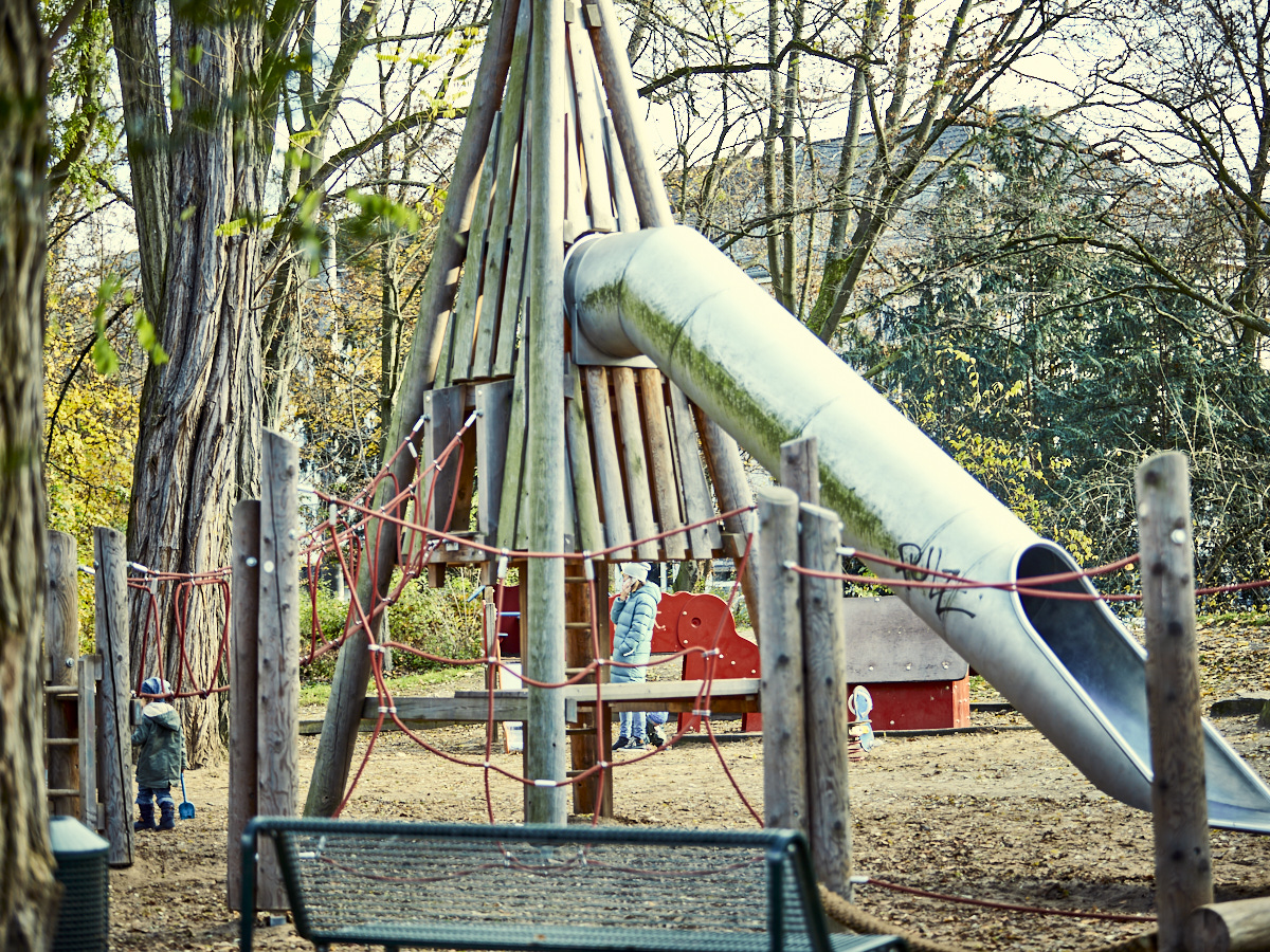 Der beliebte Spielplatz liegt in direkter Nähe des Lindenthaler Tierparks, ein Ausflug hier hin lässt sich also großartig kombinieren. Er ist sehr gepflegt und ausgestattet mit genug Platz zum Sandburgen bauen, mit Kletter- und Spielhäusern, mit Rutschen, einem großen Kletternetz und verschiedenen Schaukeln. Da er mitten im Stadtwald umgeben von altem Baumbestand liegt, hat man immer schützenden Schatten, was ihn vor allem in den Sommermonaten zu einem sehr gefragten Spielplatz macht. Dementsprechend kann es hier auch mal voller werden – doch dank seiner Großzügigkeit findet hier jeder ein Plätzchen zum Spielen.