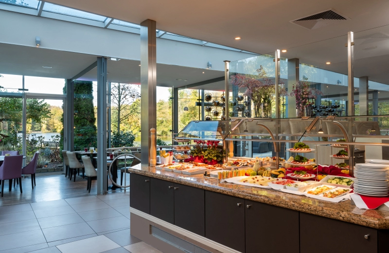 Genießen Sie das Mittag- oder Abendessen im Hotelrestaurant Vitruv, das frische, mediterran inspirierte Gerichte sowie einige regionale Spezialitäten serviert. Bei schönem Wetter können Sie auch auf der wunderschönen Außenterrasse mit spektakulärem Blick auf den von Bäumen gesäumten Bootssee Platz nehmen.