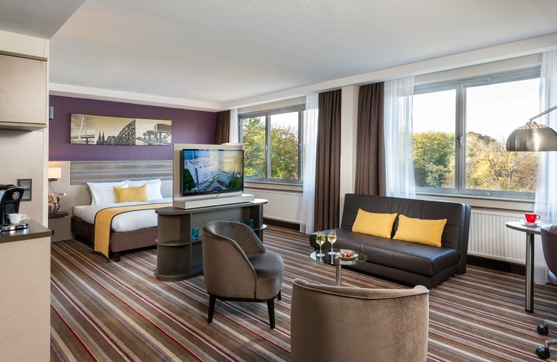 Das Leonardo Royal Hotel Köln - Am Stadtwald verbindet die Bequemlichkeit einer Stadt mit der Schönheit der Landschaft und bietet einen ideale Ausgangspunkt, von dem aus man Köln und die Umgebung erkunden kann. Am Rande des grünen Stadtwaldes mit Blick auf den Kahnweiher Bootssee gelegen, genießt das Vier-Sterne-Hotel eine ruhige Lage im Herzen der Natur und ist dennoch nur 5 km von der Kölner Innenstadt entfernt, so dass die Gäste das Beste aus beiden Welten genießen können, ganz egal ob sie geschäftlich oder privat unterwegs sind.