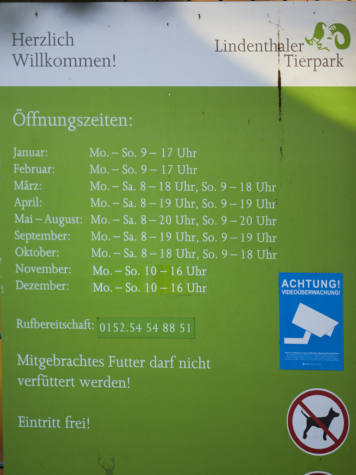 Beachten Sie bitte die Hinweisschilder bezüglich der Öffnungszeiten und der Fütterungsvorgaben.