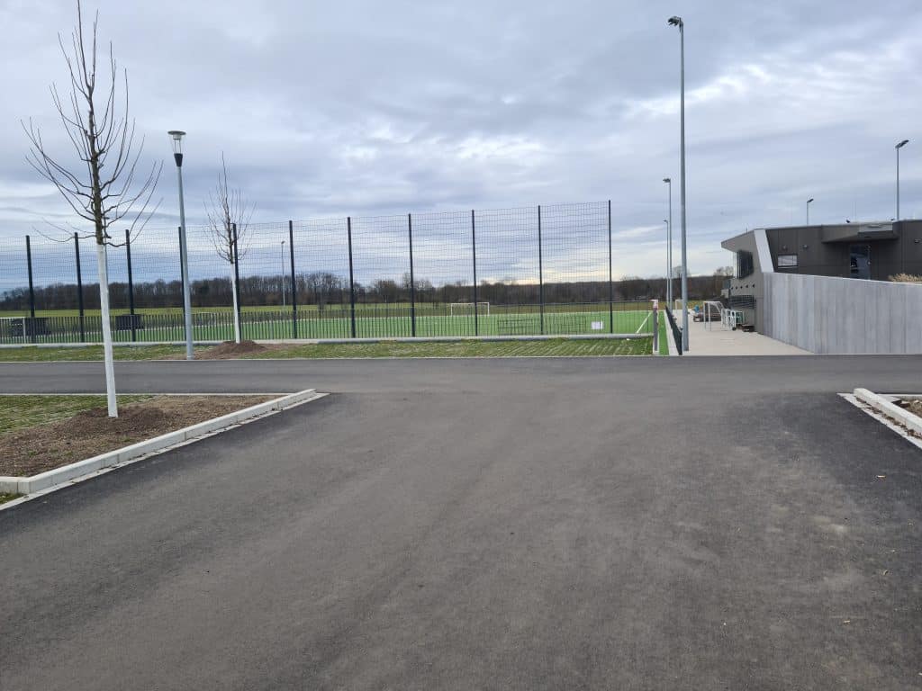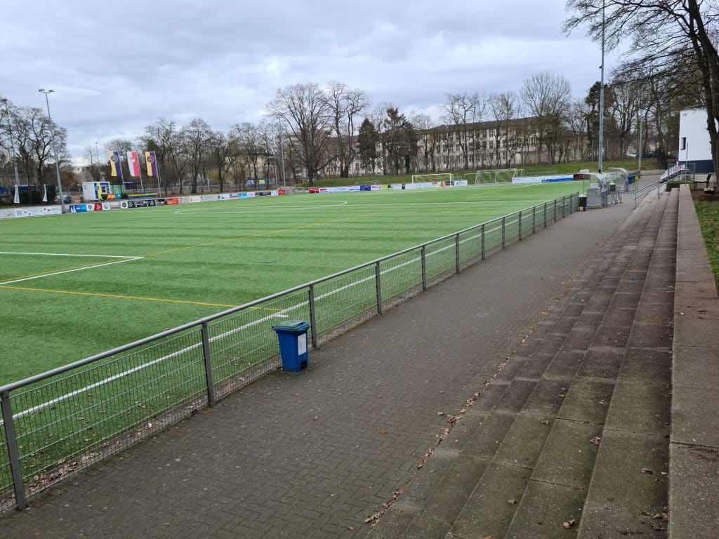 Die Anlage besteht aus zwei Kunstrasenplätzen, wobei interessanterweise zunächst der Nebenplatz einen grünen Belag erhielt und alle Teams, aus Desinteresse, den verhassten Haupt-Aschenplatz weiter zu bespielen, auf diesen wechselten. Erst einige Jahre später wurde der Hauptplatz, zu dem auch ein gemütliches Vereinsheim gehört (und die Terrasse zur Spielbeobachtung aus „höheren Ebenen“ einlädt), ebenfalls zum Kunstrasenplatz, so dass die „alte Ordnung“ wieder hergestellt werden konnte und nun beide Plätze in modernem Grün erstrahlen.