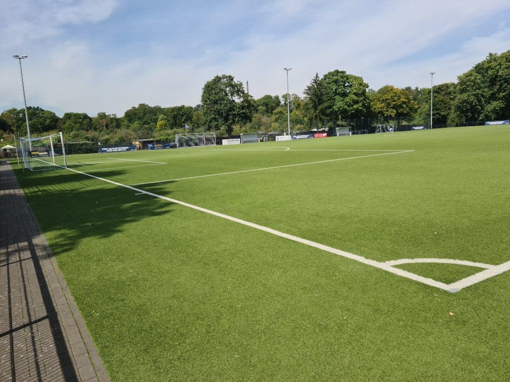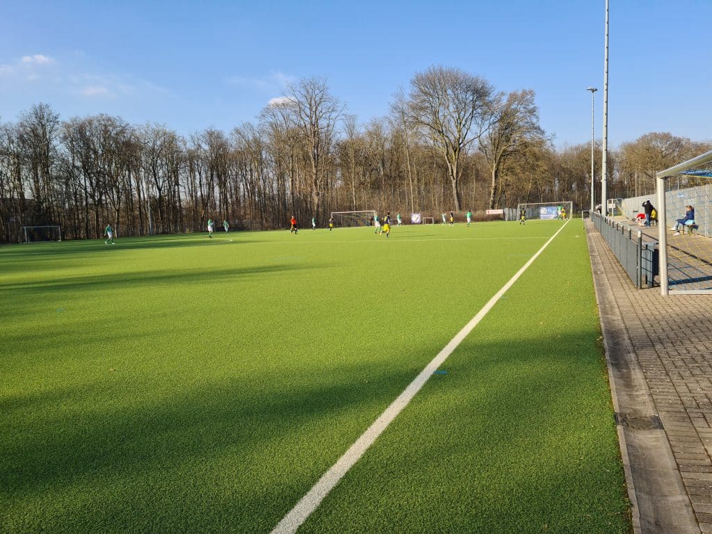 Der heutige Kunstrasenplatz war früher ein Rasenplatz, der jedoch häufig nach Regenfällen vom Sportamt der Stadt Köln gesperrt wurde, so dass die zahlreichen Mannschaften auf den ungeliebten Aschenplatz nebenan (der übrigens wegen sich darunter befindender Altlasten nicht bearbeitet werden darf) oder auf einen anderen Sportplatz ausweichen mussten. Der Umbau zum Kunstrasenplatz war daher die beste Lösung, denn nun finden alle Teams hier unabhängig vom Wetter beste Trainings- und Spielbedingungen.
